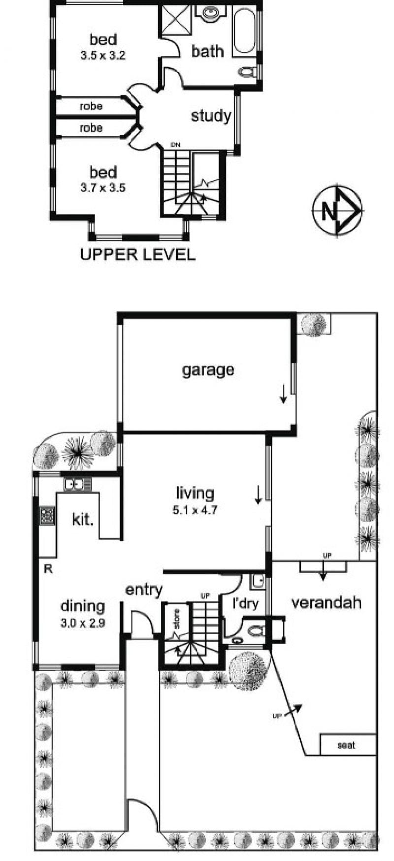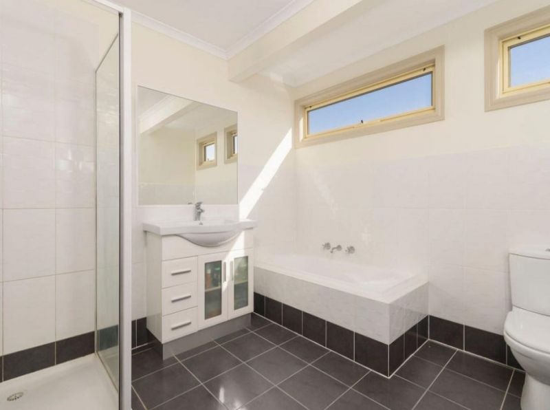 Upstairs, two large bedrooms with built-in robes are complemented by a versatile landing ideal for a study nook. The central bathroom offers a bath, shower, vanity and toilet, with an additional separate toilet downstairs plus a full laundry.