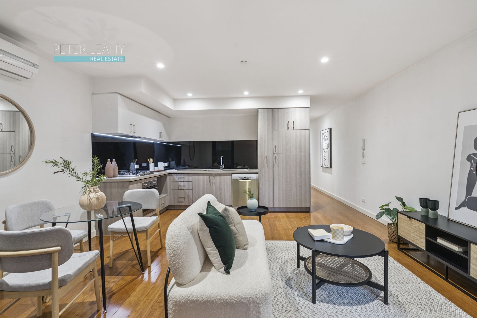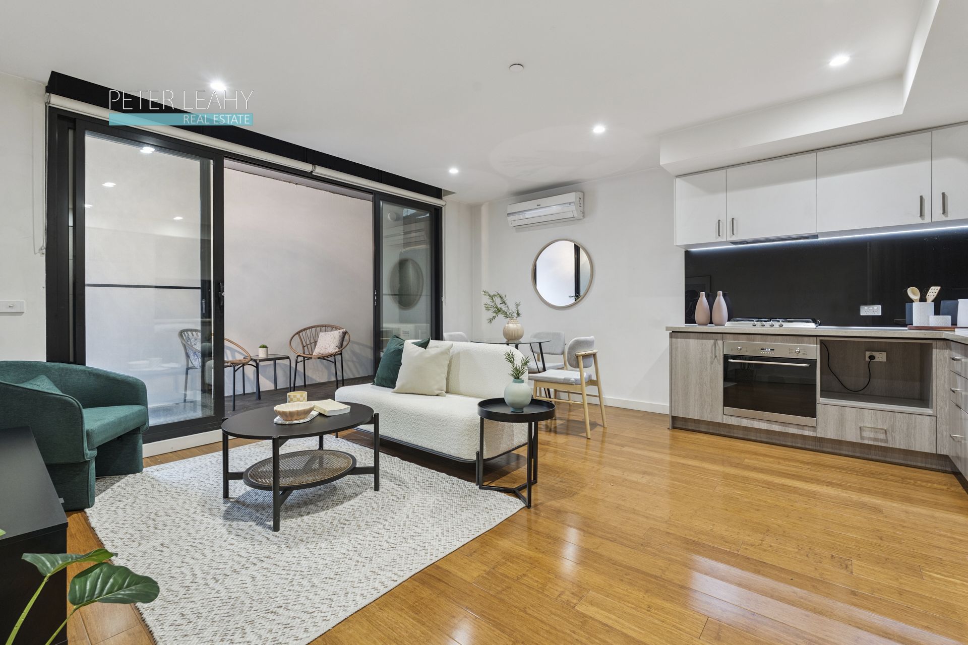 With the world on its doorstep this stylish modern apartment makes it irresistibly easy to enjoy a dynamic lifestyle. Offering an individual entrance and private position, it begins with a peaceful patio and opens into a beautifully appointed kitchen, meals and living room. Smeg, Fisher & Paykel and Bosch appliances make cooking and clean-up easy, extending to include an integrated refrigerator/freezer and dishwasher. Sleek stone surfaces and glass splash-back add elegant touches, complemented by smart storage including a pull-out pantry. Fully tiled, the central bathroom highlights a rainfall shower and incorporates bonus laundry facilities. Enhanced by a mirrored built-in robe, the bedroom is similarly stylish and well proportioned. Top extras include heating/air conditioning, an intercom and prime garage parking space, close to the abode.